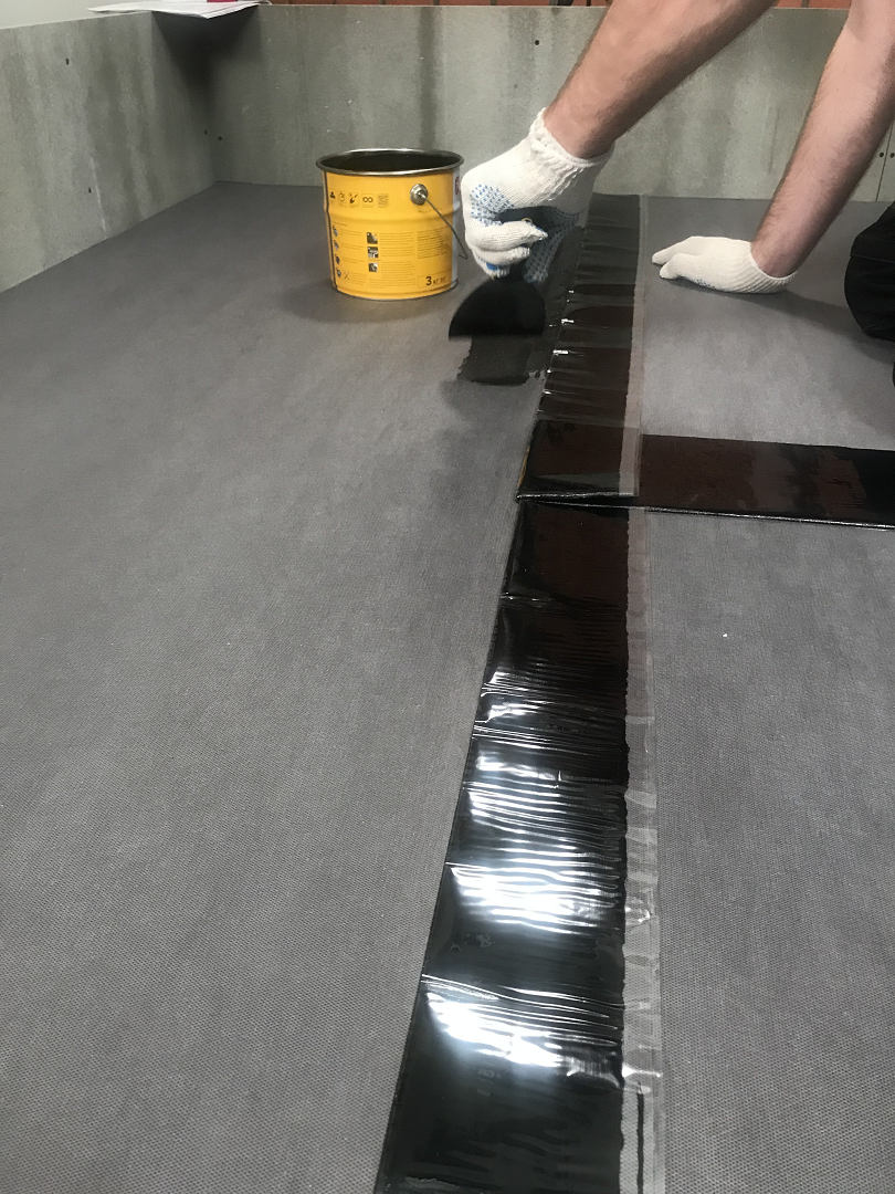 Для защиты битумно-полимерного слоя от повреждений механического характера сверху материал обрабатывается уникальным покрытием Spunbond. Напольную плитку можно укладывать сразу на гидроизоляцию. Защитную стяжку для нее подготавливать не нужно, поэтому монтаж покрытия происходит быстро.
