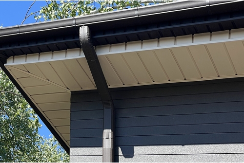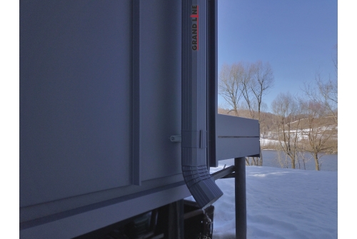 Матовый водосток позволяет максимально усовершенствовать и завершить внешний вид строений с матовой кровлей и фасадом.