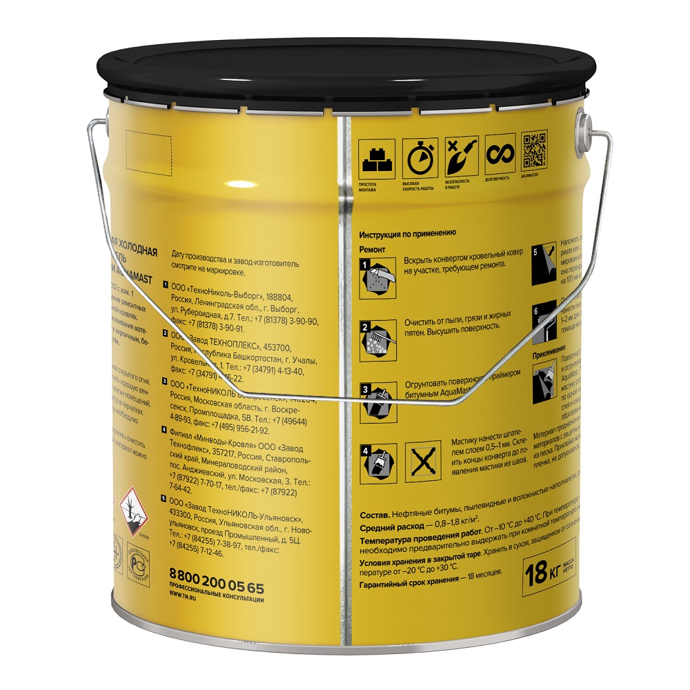 Описание товара: "Мастика Технониколь AquaMast для ремонта и приклейки, 18 кг"