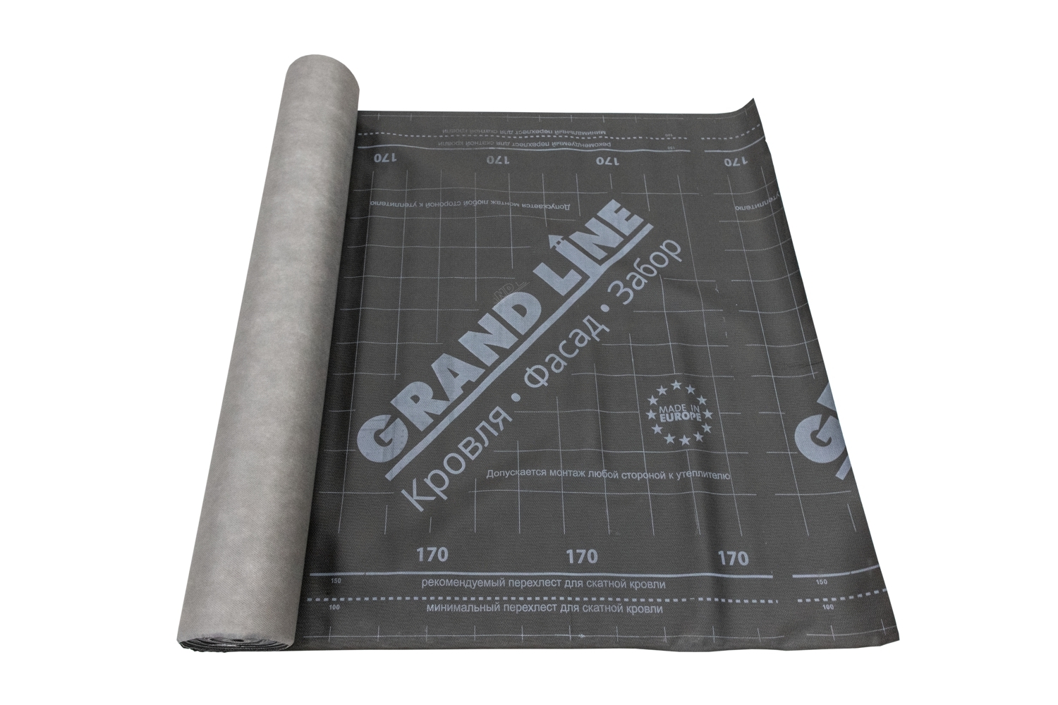 Мембрана супердиффузионная Grand Line 170 высокопрочная гидроизоляционная мембрана, отлично отводит конденсат и препятсятвует его проникновению в утеплитель.