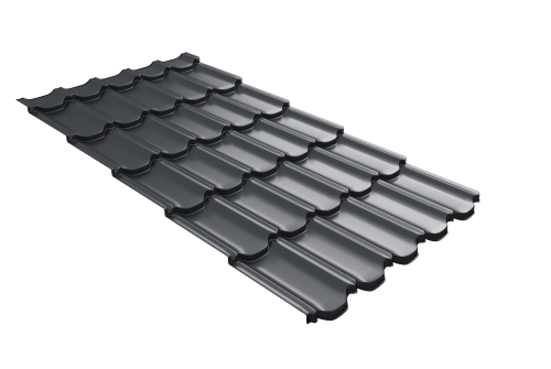 Металлочерепица квинта плюс Grand Line c 3D резом 0,45 Drap TR RAL 7024 мокрый асфальт