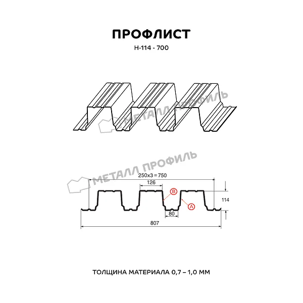 Описание товара: "Профнастил Н114 x 750 A ОЦ оцинкованный 01 БЦ 0,9 мм"