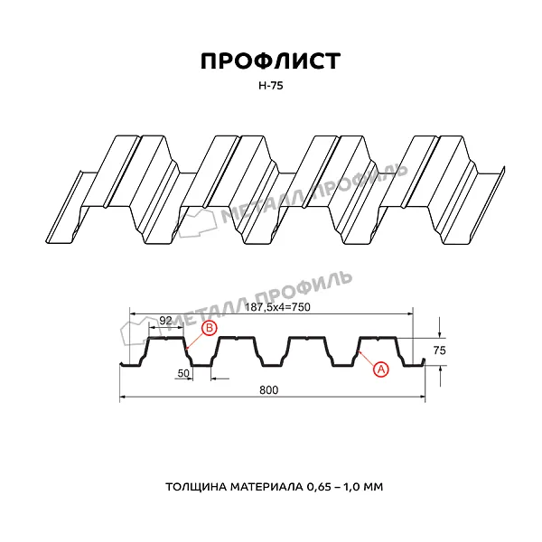 Профлист МЕТАЛЛ ПРОФИЛЬ Н-75x750-B (ПЭ-01-3009-0,7) широко применяется в Нижнем Новгороде для монтажа профилированного листа. Представляет собой металлический оцинкованный лист с покрытием. Толщина металла с оцинковкой и полимерным слоем — 0.7 мм.После проката на специальном оборудовании металл приобретает рисунок из ритмичных волн. Такая форма придает профилю несущую способность.