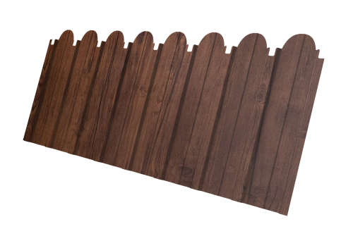Профнастил C10 с фигурной кромкой имитирует классический русский деревянный забор.