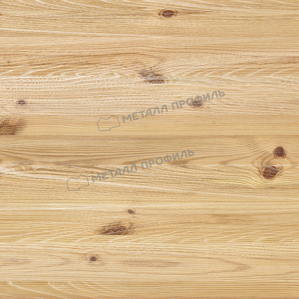 Сталь с покрытием на основе модифицированного полиэстера ECOSTEEL® – прекрасная замена природным стройматериалам. Натуральное дерево подвержено порче насекомыми, влиянию агрессивной среды горению. Поэтому требует пропитки химикатами, дополнительного ухода, окраске. Всё это противоречит изначальной идее использования экологичного материала. ECOSTEEL® по внешнему виду практически нельзя отличить от дерева. Вместе с тем изделия с полимерным покрытием гораздо экономичнее натуральных материалов. Декоративный слой делает металл высокоустойчивым к неблагоприятным природным явлениям – снег, ультрафиолет ветер. В каталоге компании есть на выбор такие породы дерева, как: сосна, белёный дуб, морёный дуб.Преимущества: