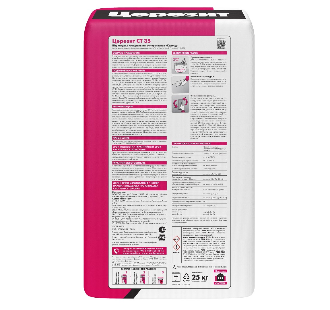 Описание товара: "Штукатурка Ceresit СТ 35 минеральная 2,5 мм"короед" белая (25 кг)"