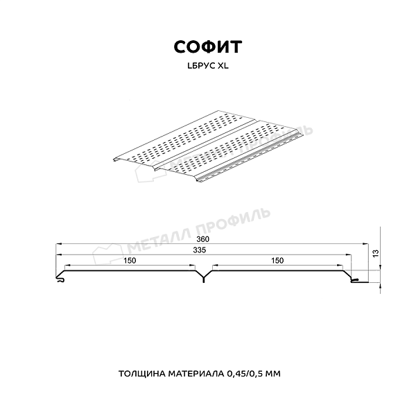 Софит Металл Профиль перфор. Lбрус-XL-14х335 (VikingMP E-20-9005-0.5)