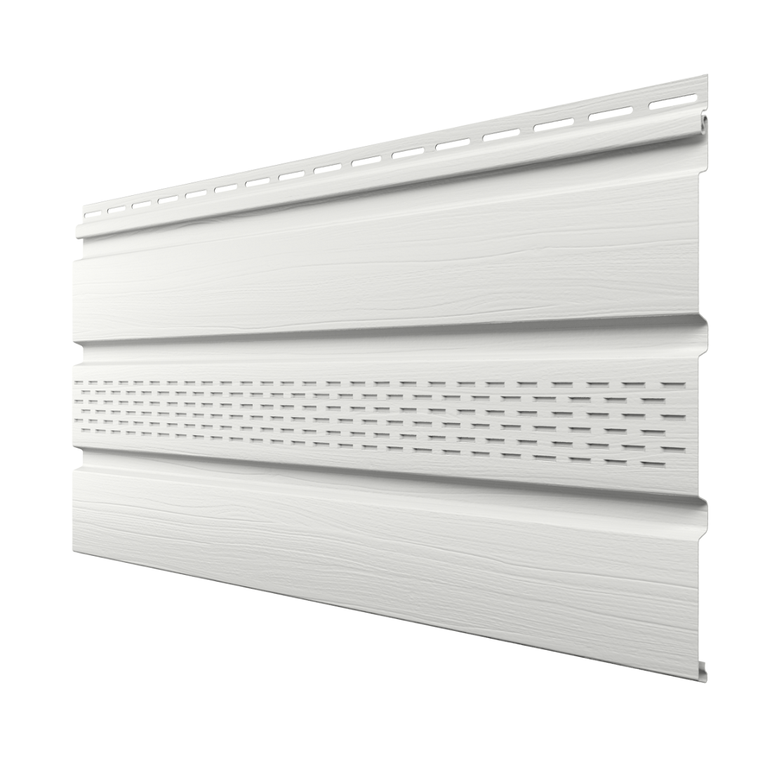 Помимо функции защиты и проветривания, софиты помогут придать зданию законченный вид, скрыть места переходов от вертикальных поверхностей к горизонтальным. Полуматовая поверхность и текстура софитов реалистично имитируют натуральную древесину. Панели отличаются прочностью и высокой устойчивостью к меняющимся климатическим условиям.
