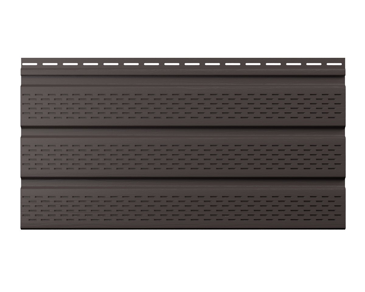 ТН, Софиты, полностью перфорированный, каштан, 3м используется для оформления потолка в нежилых помещениях, таких как террасы, гаражи, беседки и пр. Защищает от воздействия неблагоприятных погодных условий. Способствует наилучшей вентиляции, препятствует проникновению птиц и насекомых под кровлю. Нетоксичный материал. Сочетается почти со всеми видами стен и кровель.